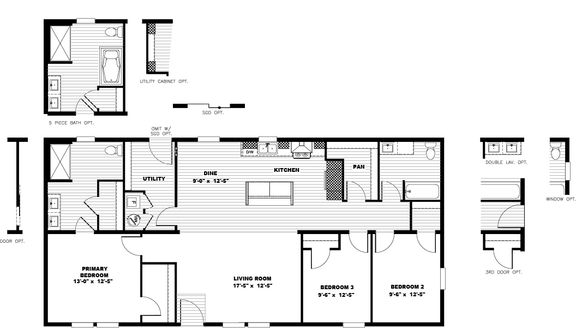 3 beds / 2 baths / 869 sq.ft. / 14x66