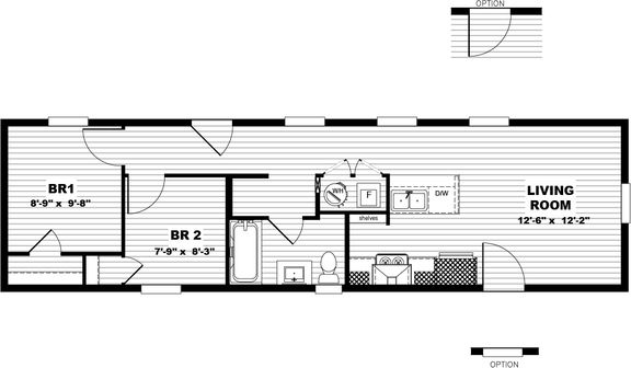 2 beds / 2 baths / 790 sq.ft. / 14x60