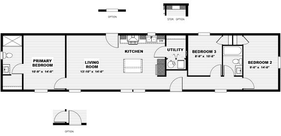 3 beds / 2 baths / 869 sq.ft. / 14x66